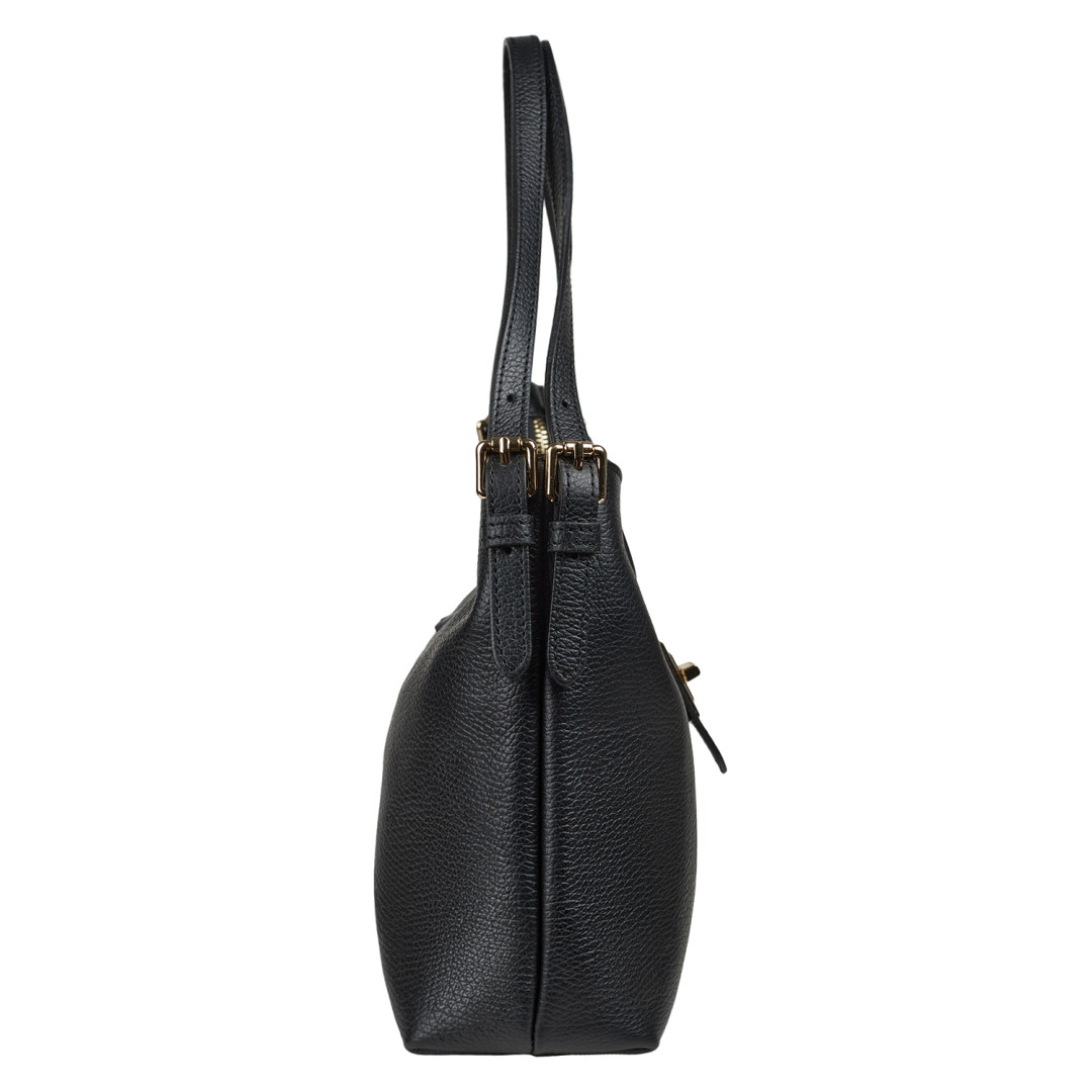 Сумка оснащена удобными ручками и съёмным плечевым ремнём, что позволяет носить её как в руках, так и через плечо.